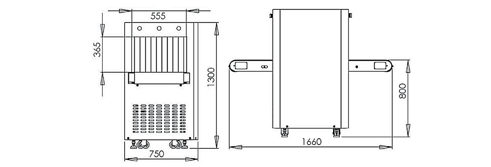 С размерами тоннеля 555 мм × 365 мм (Ш × В) она идеально подходит для досмотра ручной клади в аэропортах, на железнодорожных станциях, на таможенных постах, в портах и т.д.